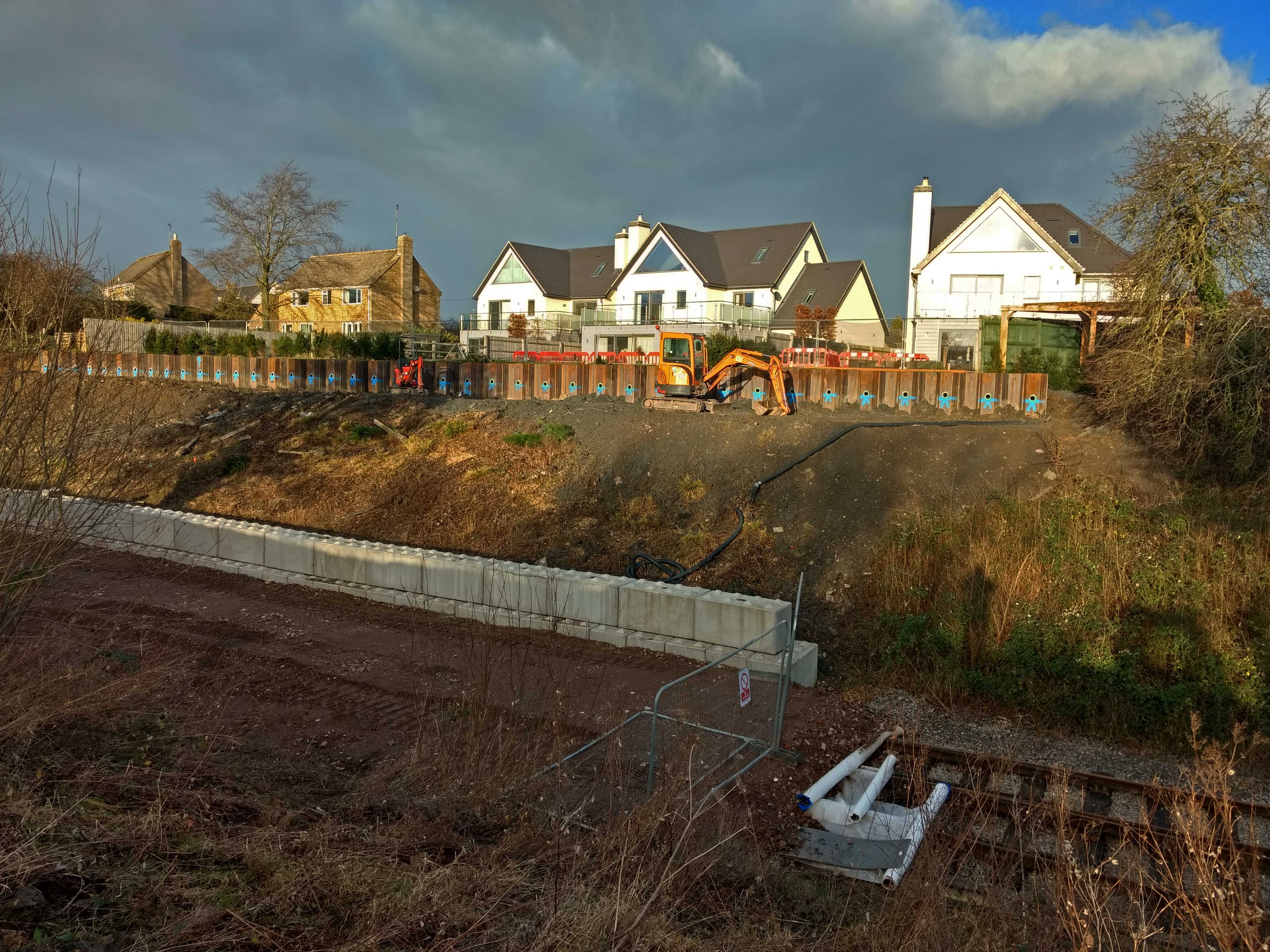 As you can see the sheet piling is complete, and the large crane has gone again. Soil nailing is next.If all went well, contractors should also have started on the repair of bridge 8, the subject of the successful Trust appeal for help. Unfortunately it all happens underneath, so passing over the top shows little change for the motorist. No doubt we will have a Civil Engineering report in due course, once there is something interesting to say.