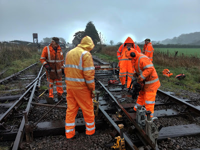 Ten days ago our PWay gang was invited to a joint excercise at the ESR in Cranmore. They have a very modest PWay gang - their line is only  miles long - and they needed a few more strong arms to help take a twist out of the turnout that leads from the steam shed to the main line.